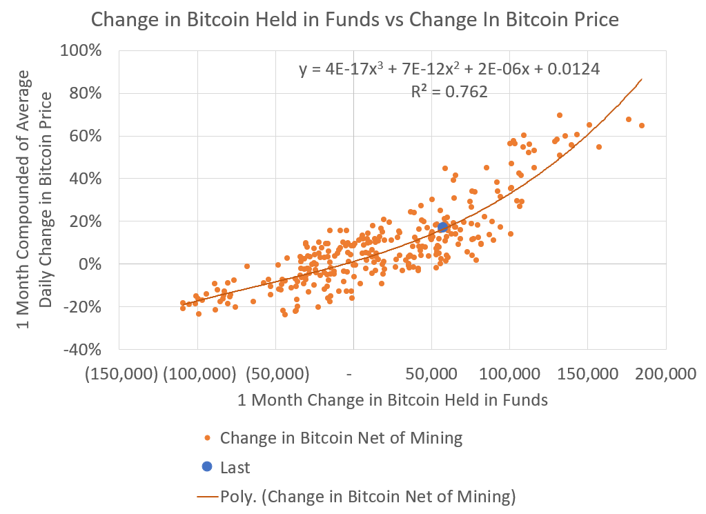 Except Microstrategy has no cash flow. And all of its cash has been spent on bitcoin. So Microstrategy’s “strategy” is to perennially issue more preferred stock to generate cash flow to buy bitcoin… raising the price of bitcoin and facilitating more issuance. So we can actually model this out. Thanks to the transparency of ETFs, we now know the elasticity of bitcoin — buying 50K bitcoin in a month raises the price of bitcoin by about 18%, or $6B in creates aggregate market cap gain of $500B (at current prices):