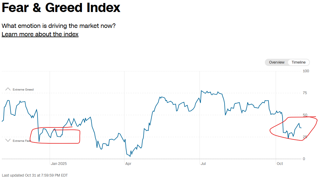 One of the more confusing aspects of today’s market environment is the gas-lighting. CNN has been proudly displaying its “Fear & Greed” index for over two decades, but in the past few months it has been firmly wedded to “Fear” even as markets make continuous new highs — a pattern it showed in early 2025 as well.