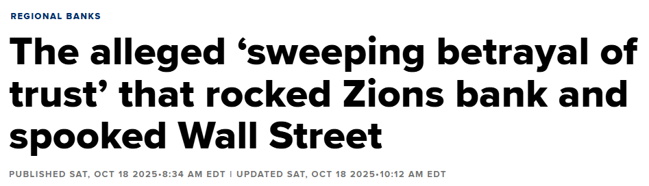 A “sweeping betrayal of trust”? No wonder we want “trustless” settlement in Bitcoin (sarcasm). Now the Zion fraud appears to be largely tied to commercial mortgages. But the underpinning facts are astonishing: