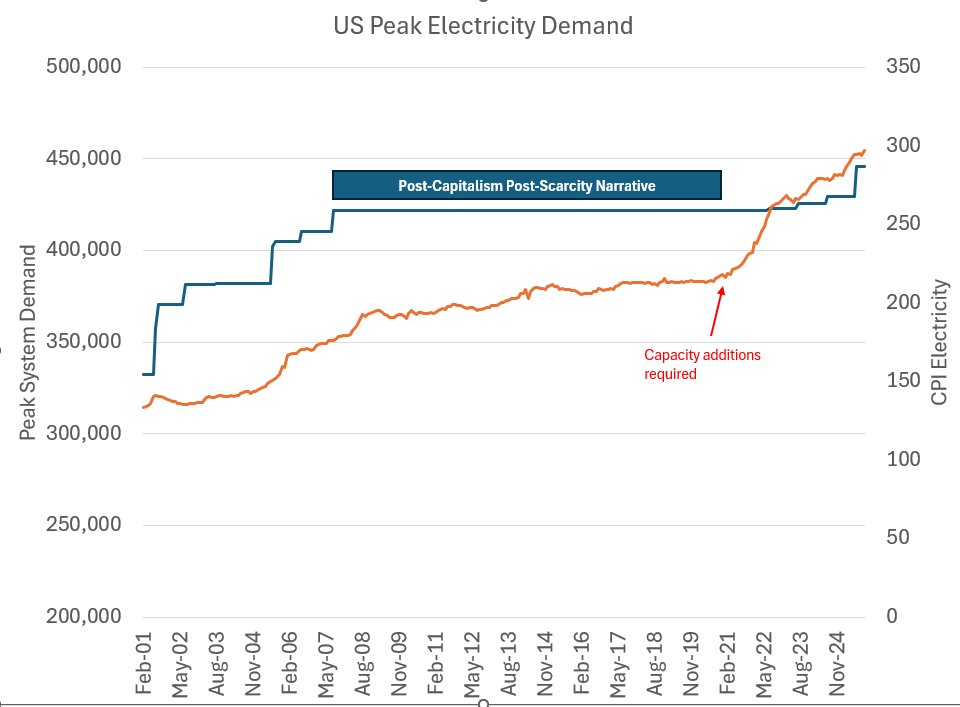 We are hitting a “Capacity Cliff” for many assets — housing, energy, medical care — forcing prices higher. However, building new capacity into this spike is suicide.