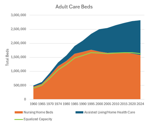 It is unlikely we will see a surge in construction to provide low-end end-of-life care from the private sector — the end customer is literally dying out; government is likely to step in, eventually, as they did in the 1960s.