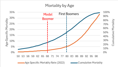 Death rates are rising globally as the global Baby Boomer cohort, first born in 1945, begins to exceed life expectancy.