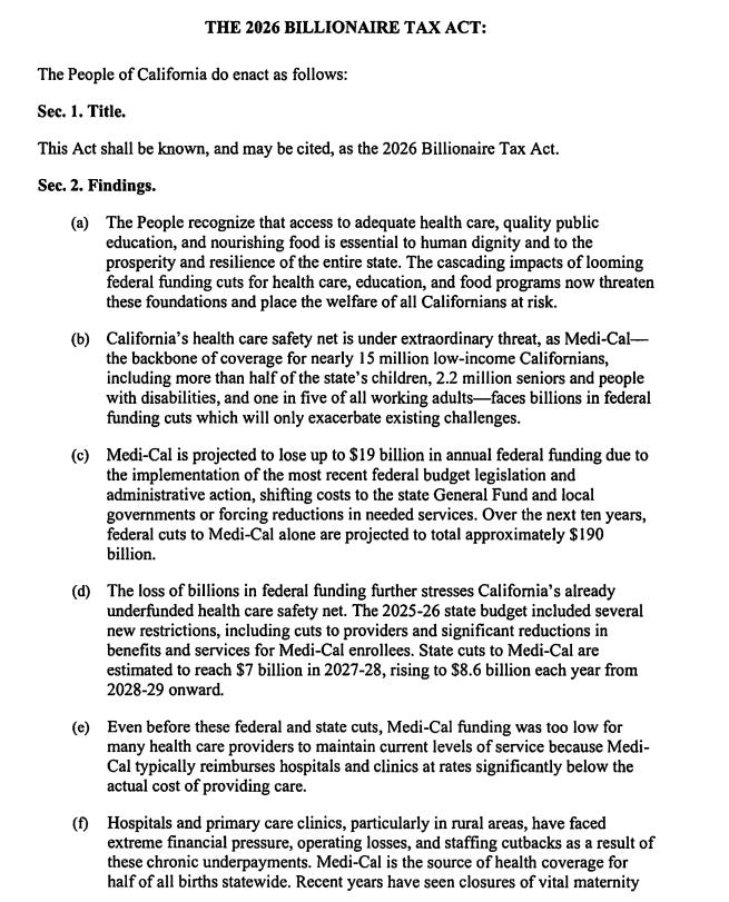 Wealth taxes to fund health care for seniors while cloaking it in a pitch to expand maternity wards… will hypocrisy ever find bounds? (No) My expectation is that the California initiative will fail. As framed, it is an overt violation of takings clauses and restrictions on individual taxation, AND it is opposed by Governor Newsom. BUT it is the opening salvo in a war in which there will likely be no victors — like passive investing, we made the easy choices for too long, and now it’s likely too late.