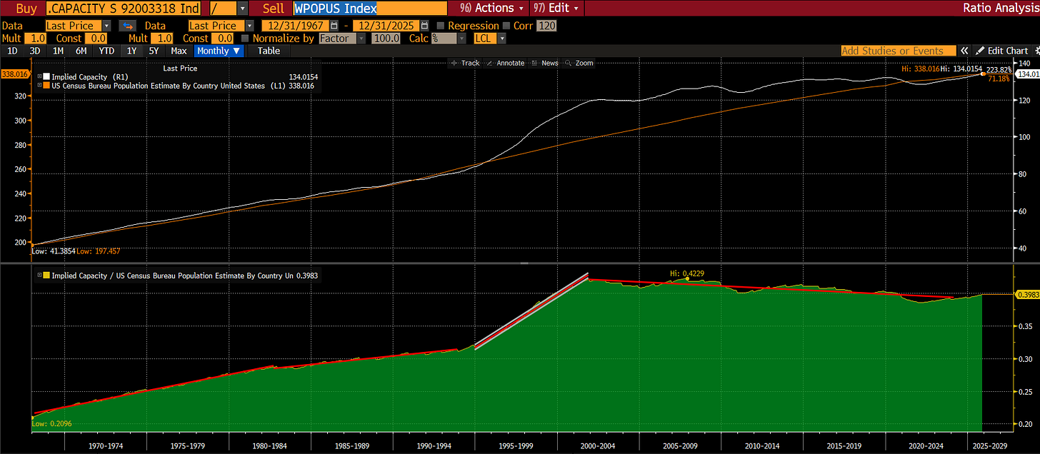 It is not. Per-capita productivity equals throughput divided by population only if capital scales at least proportionally with the population. Wall Street assumes the numerator (throughput) scales infinitely, while ignoring that the denominator (capital stock) is physically capped. This isn’t a Malthusian tale of inevitable collapse—I’m not predicting an endpoint where growth hits zero forever. It’s about the path: the short-run thermodynamic penalties and ergodicity errors that Wall Street’s linear models miss, turning a ‘productivity boom’ into a margin call unless we adapt.