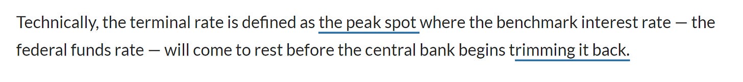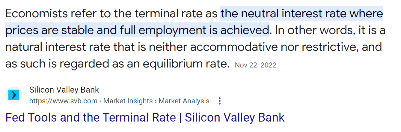 I shit you not, the very first explanation that occurs in a Google search for “definition of terminal rate” is from Silicon Valley Bank: