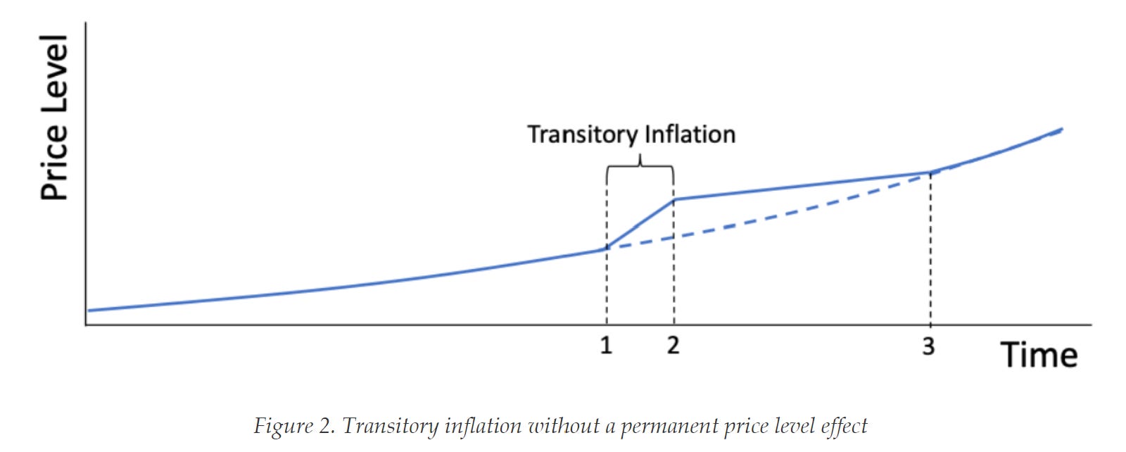 As my partner Harley Bassman likes to point out, “everything is transitory if you wait long enough.” And to be fair, the Fed never provided us with an explicity, helpful chart like the two below to determine whether their objective was to return the inflation rate to trend OR to return the price level to trend.