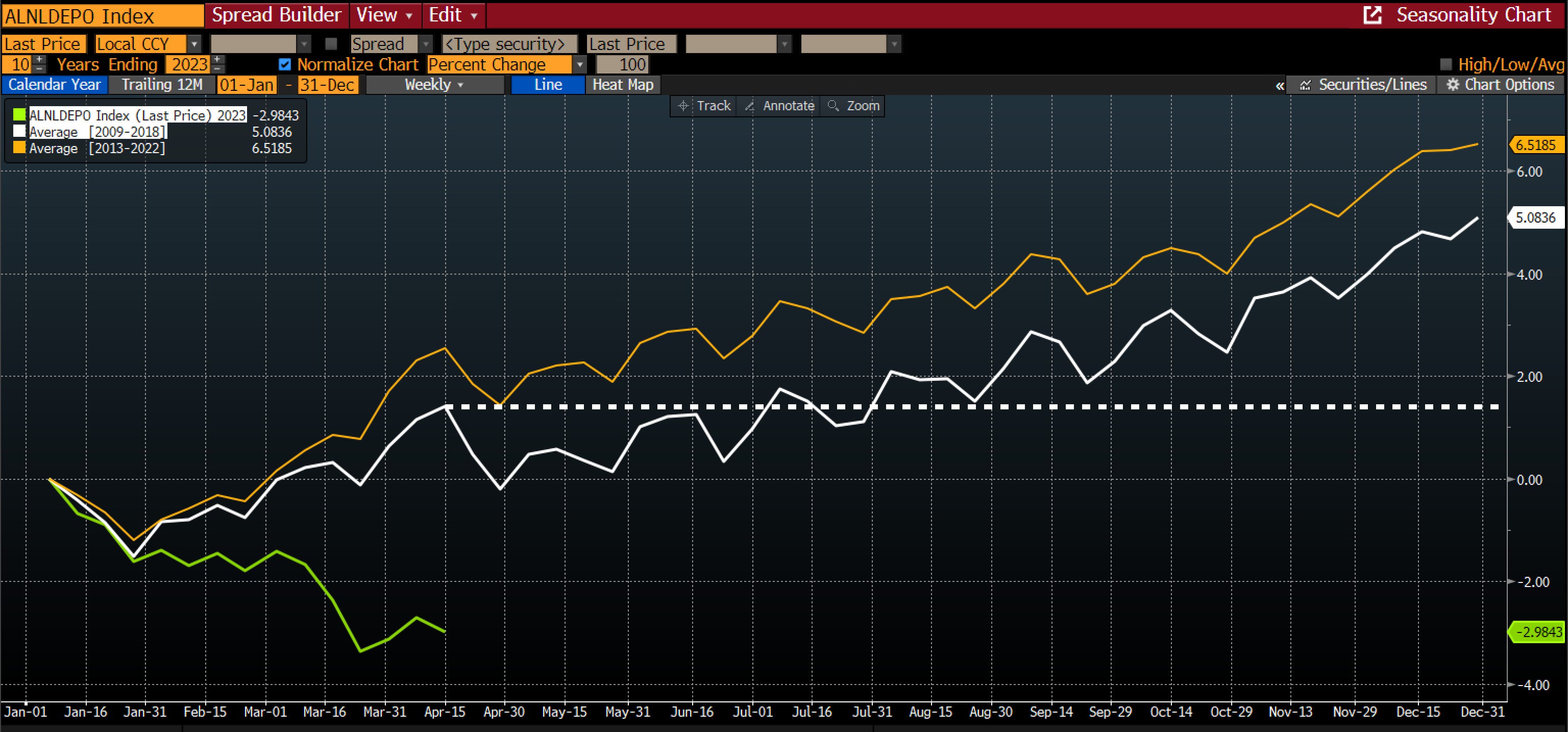 And an important wrinkle is that these deposit drawdowns are in the context of seasonally high levels due to tax season. In actual terms, April 15th - July 31st tends to see zero deposit growth.