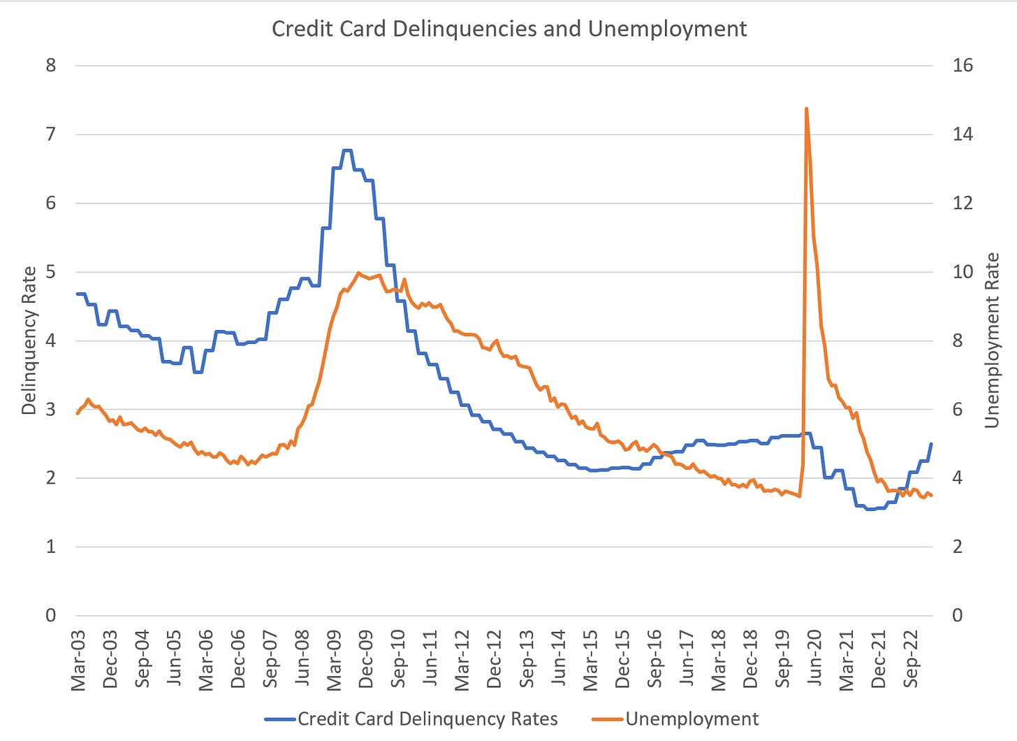 When unemployment begins to rise, these delinquencies will mushroom. That it is already rising sharply ahead of the increase in unemployment suggests the 2008 model remains valid: