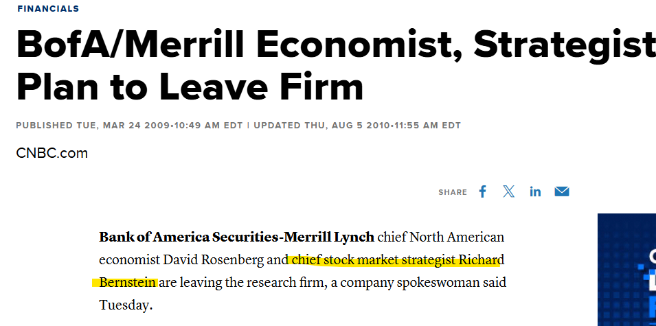 “Predictably,” few were bullish in 2009 — the start of another great investment period for US equities. One who was bullish was Rich Bernstein of Merrill Lynch: