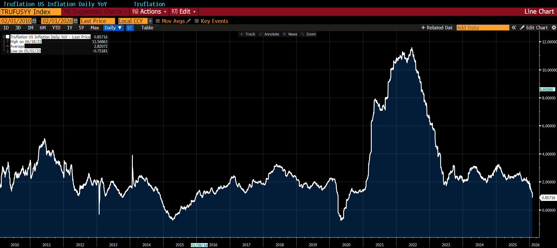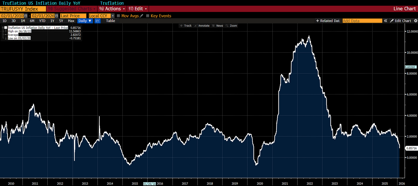 And as CPI prints “beat” to the downside, driven by seasonality, this is likely to lead to renewed discussions of rate cuts. My estimate is that we will get nearly three cuts priced in over 2026 as the seasonality gives way yet again. In other words, Waller was right to dissent:
