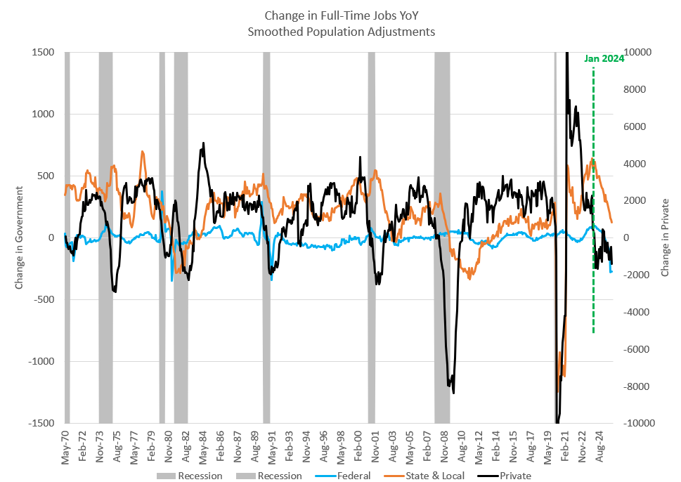 On the flip side, government employment is contracting at the Federal level; state and local seem not far behind: